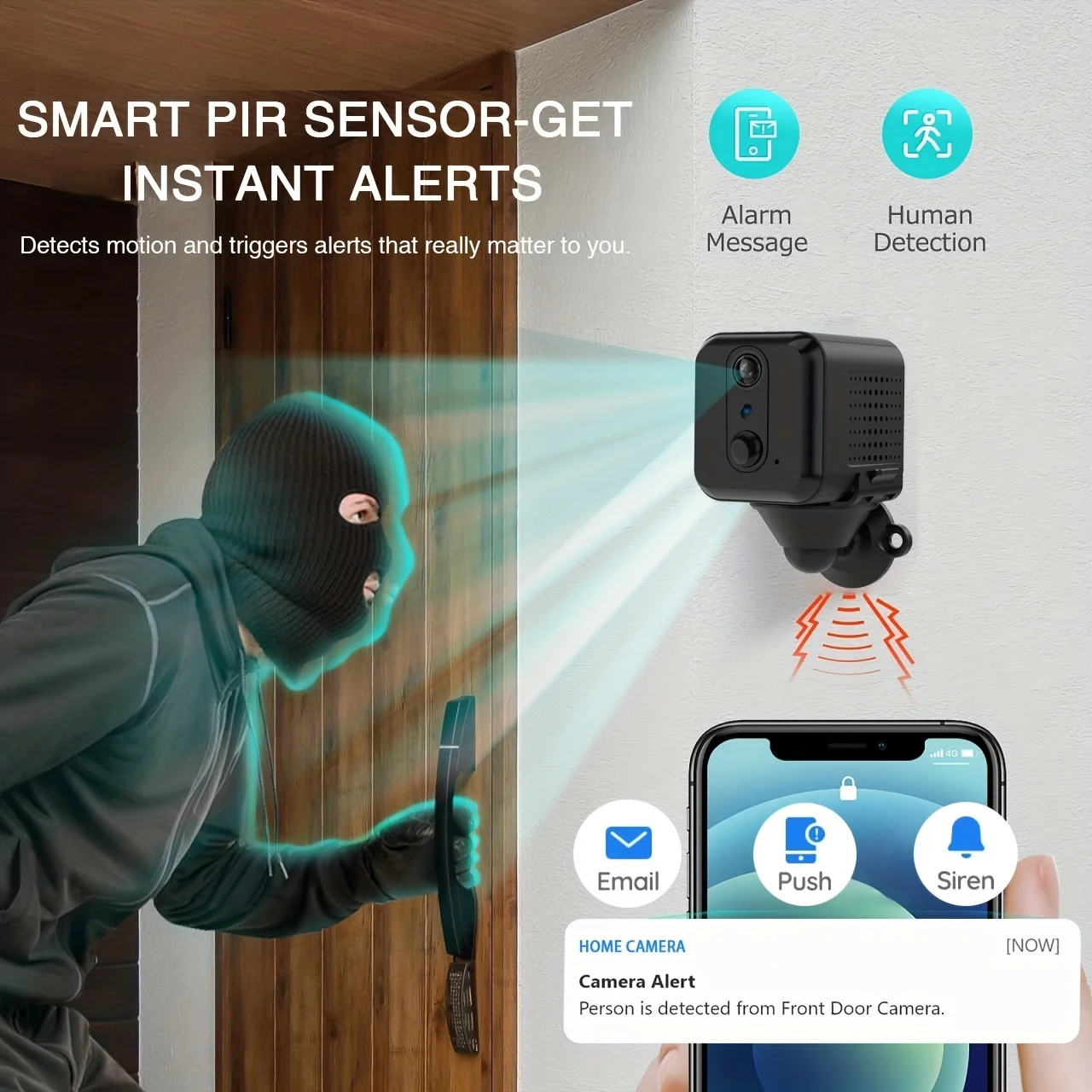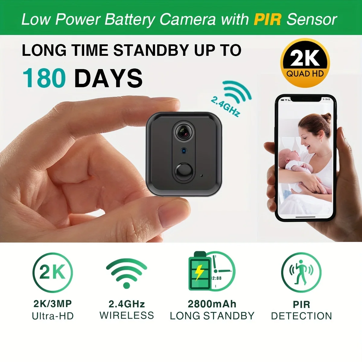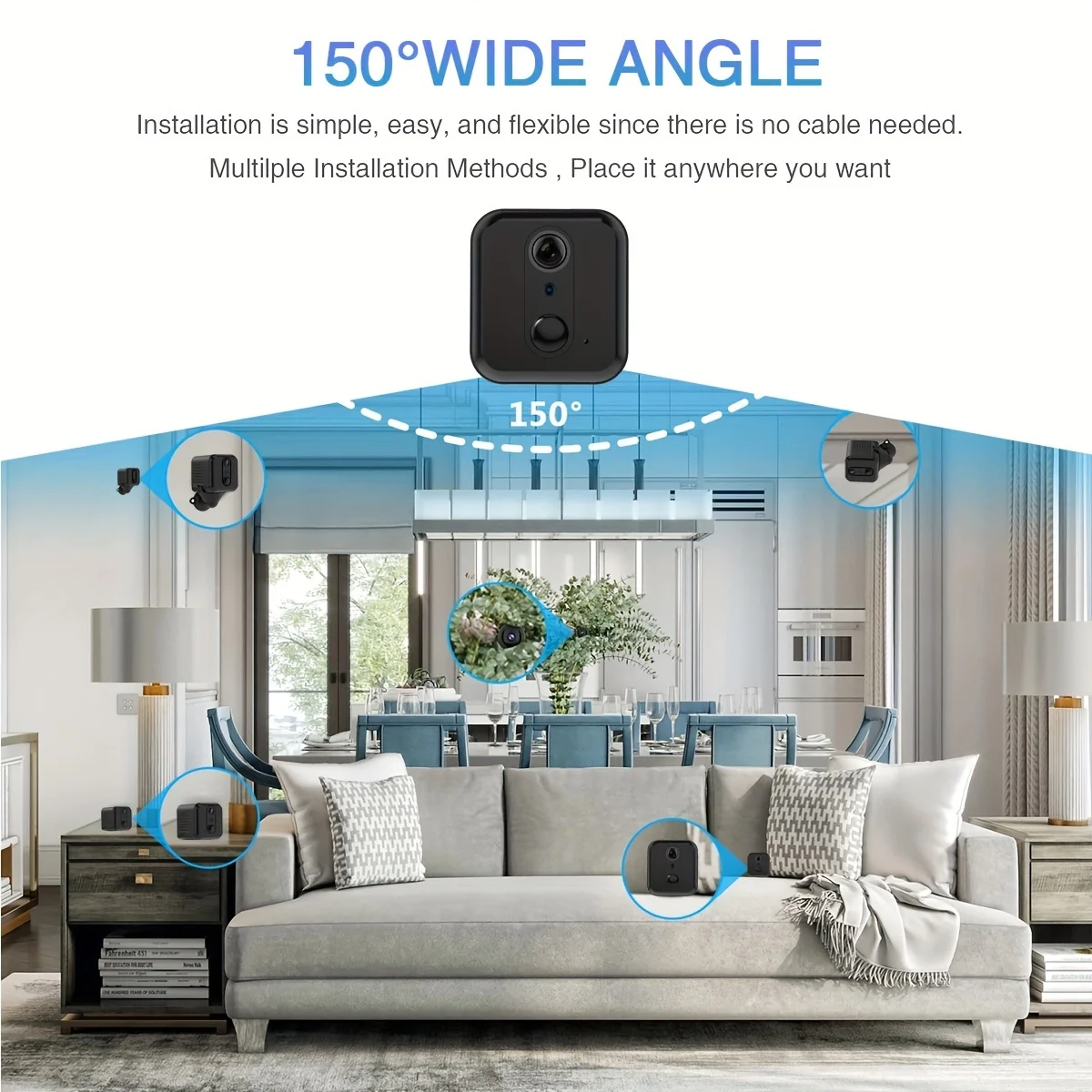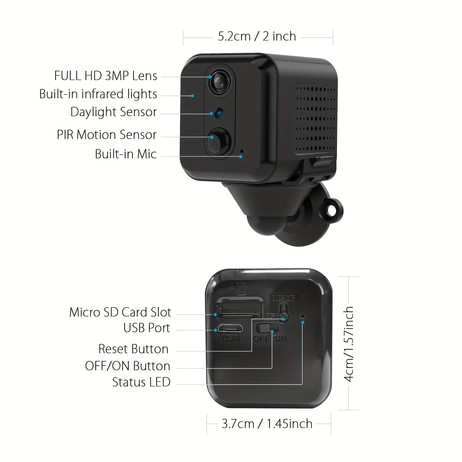 3MP HD video Wifi Camera,Wire-free smart security samera,Mini Nanny Cam Wireless Works with PIR motion detection,night vision,