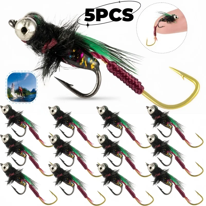 5 Pcs/Box Flies Fishing For Trout Nymph Dry Flies Fly Fishing Lures Fishing Bait Fly Fishing Hook Fly Fishing Lures Kit