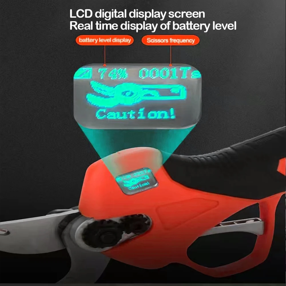 {Efficient Cutting/Safety Protection} Equipped with a powerful motor and all steel gears, the cutting speed is very fast and efficient, with a longer service life, solving the problem of old-fashioned pruning. This pruning shears can improve the efficiency of human gardening work.