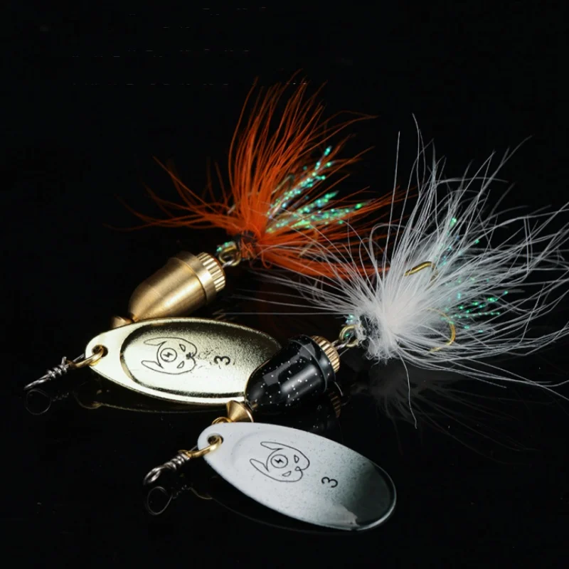 Fishing Spinnerbait Hard Metal Spoon Fishing Baits Fishing Lures Bass Trout Salmon Spinnerbait Fishing Tackle Hooks with Feather
