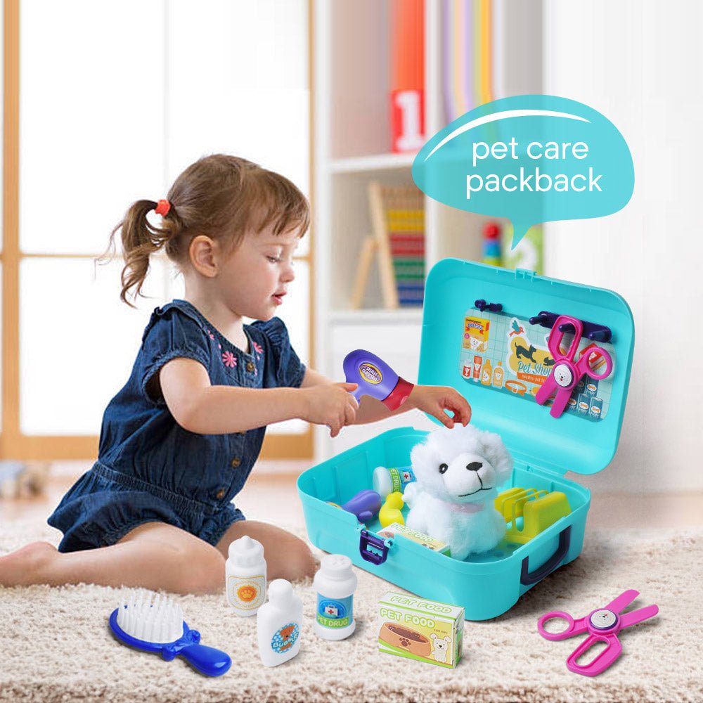 GizmoVine Dog Grooming Doctor Kit, Puppy Carrier Pretend Play Set