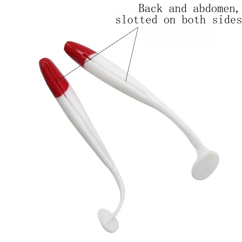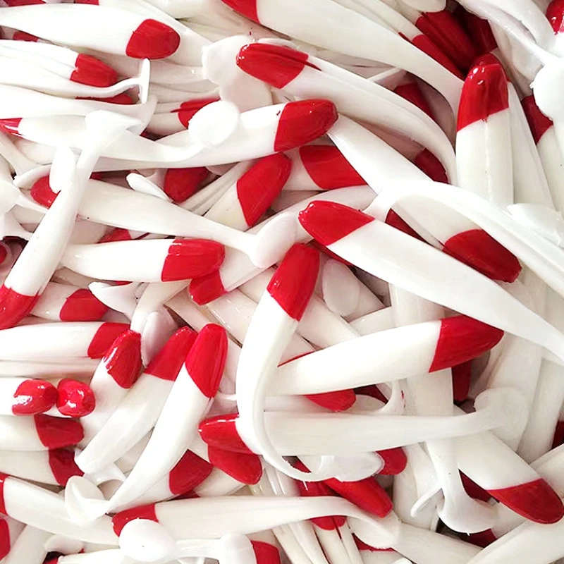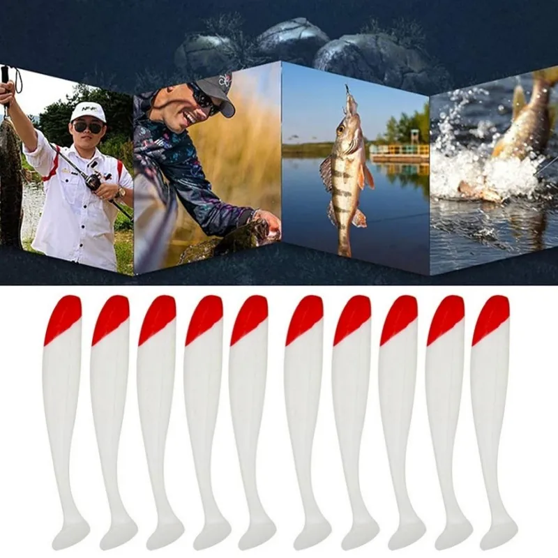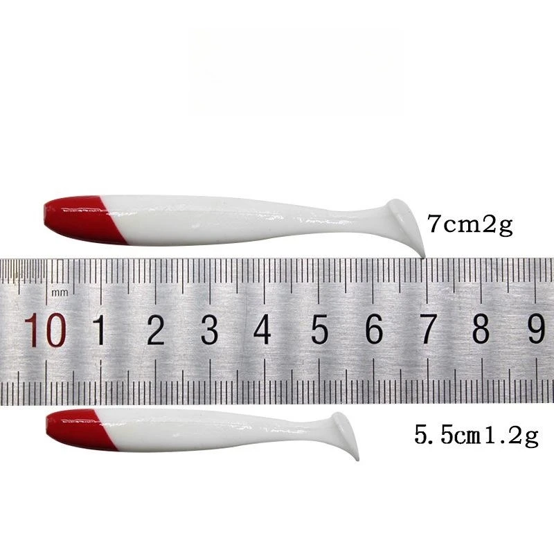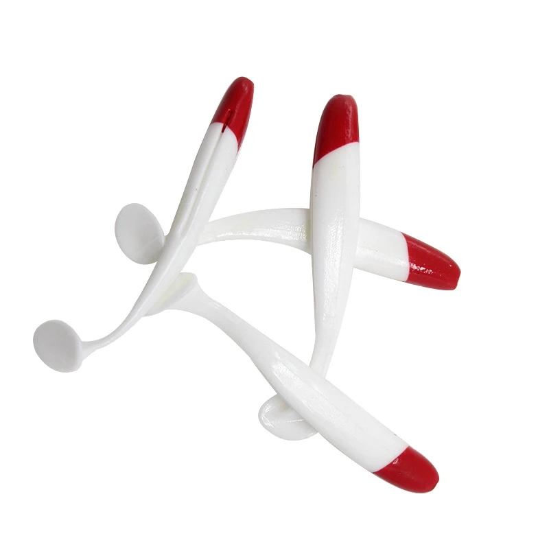 Soft Fishing Lures Simulation Paddle Tail Plastic Baits Artificial Worm Swimbait Red Head White Body T Tail Bait for Bass Trout