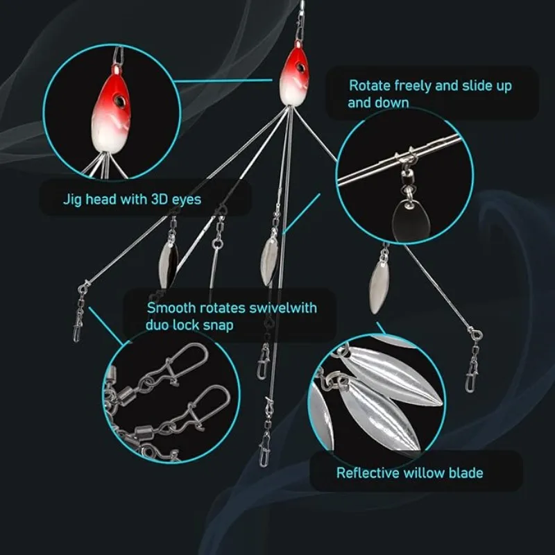 【Suitable for Multiple Soft Baits】: 5 sturdy steel arms ensure strength and flexibility. Sinkerless product with blades. High-quality snaps and swivels allow for easy rigging with a variety of lures.